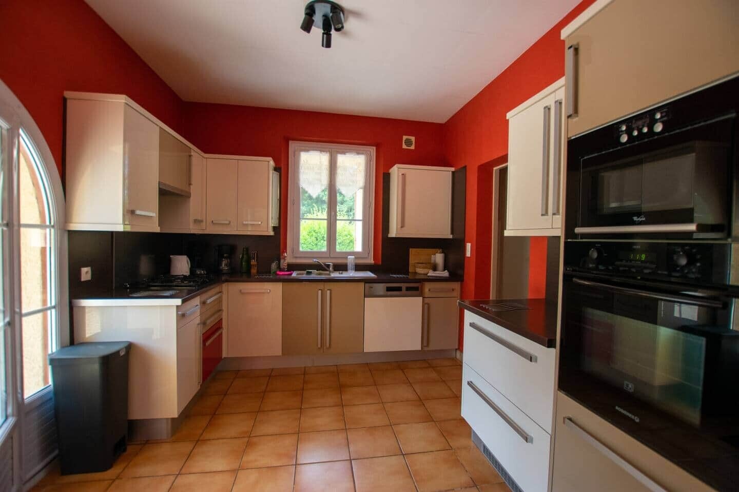 Grote, volledig uitgeruste keuken: vaatwasser, oven, microgolfoven, koelkast met vriezer, koffiezetapparaat, Senseo, broodrooster…
